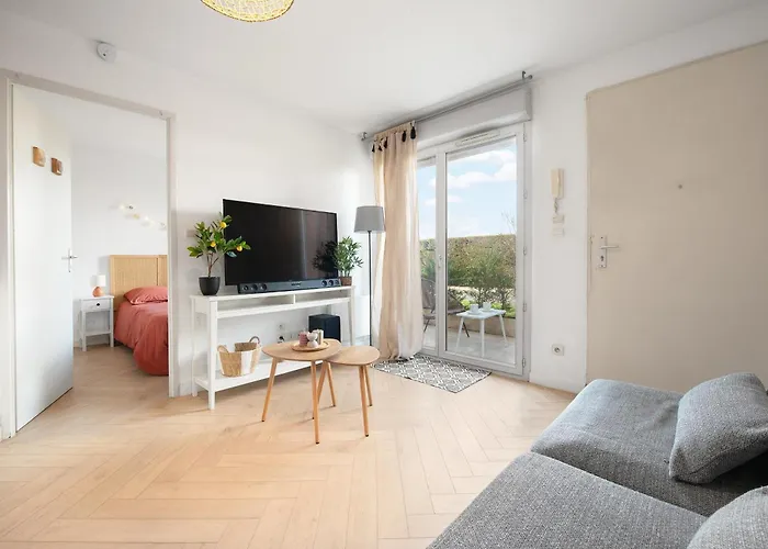 Appartement Joli T2 avec terrasse et Parking comprend des installations indépendantes, telles qu'une cuisine complète avec une bouilloire électrique, un réfrigérateur et de la vaisselle. L'aéroport de Toulouse-Blagnac est à environ 15 minutes en voiture.